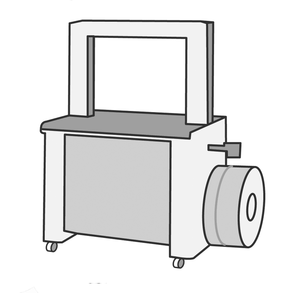 تسمه PP عرض 10 یا 12mm (آجدار در صورت کارتن براق). دستگاه میزی بهدلیل سرعت مناسب، جای کم و برق تکفاز. بودجه معقول و سرعت تحویل بالا.